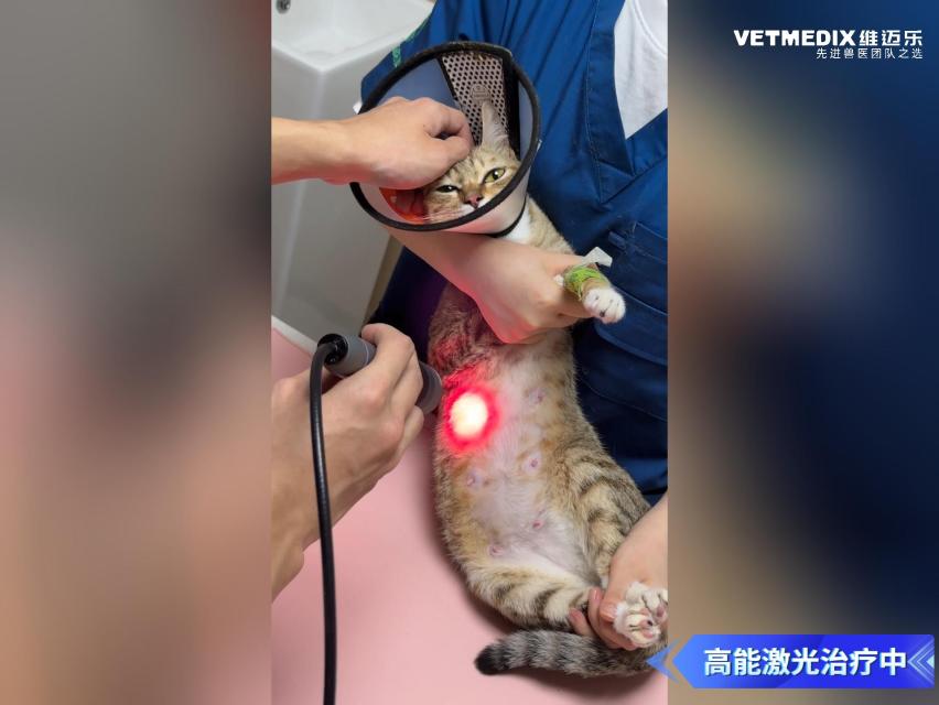 Постпарталното натрупаност на млечните жлезди е честа појава кај женските мачки. Без навремено лекување, може сериозно да влијае на квалитетот на животот и здравјето на мајката мачка, потенцијално да влијае на нормалното доење на мачињата. Во тешки случаи без навремена интервенција, може да се развијат посериозни состојби. Високо-енергетската ласерска терапија, како нов метод на физичко лекување, е широко применета во ветеринарната медицина во последниве години. Преку ласерско зрачење со висока енергетска густина, промовира поправка на ткивото, ја ублажува болката и ја подобрува циркулацијата на крвта.